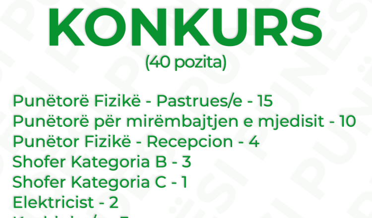Ndërmarrja Publike Lokale Kastrioti Sh.A Obiliq shpall konkurs për këto pozita